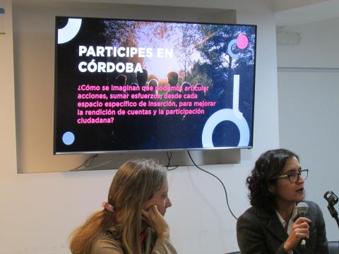 Durante la primera parte del evento, Pamela Cáceres y Virginia Romanutti, expusieron los proyectos en los que Nuestra Córdoba viene trabajando, en el marco de este programa, desde marzo de este año. Entre ellos se encuentran una serie de talleres de formación-acción en monitoreo ciudadano y gobierno abierto que se estarán desarrollando hasta fin de año en las zonas de los CPC Villa Libertador, Argüello y Centroamérica y en los barrios de Alberdi y Alta Córdoba. Además, el proyecto “Somos Parte” en su edición 2019, con docentes, alumnos y alumnas de la jurisdicción del CPC Centroamérica, que trabaja la construcción de espacios públicos y ciudad desde la perspectiva de la niñez. Por otro lado, la red está realizando revisiones a través de diagnósticos de necesidades, encuestas y entrevistas a usuarios, de su plataforma web de monitoreo ciudadano: Reporta Ciudad.
