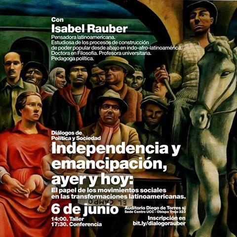 Nuestra Córdoba invita a participar del Diálogo de Política y Sociedad “Independencia y emancipación, ayer y hoy: El papel de los movimientos sociales en las transformaciones latinoamericanas”, con la Dra. Isabel Rauber, organizado por la Facultad de Ciencia Política y Relaciones Internacionales, de la Universidad Católica de Córdoba, que se desarrollará el lunes 6 de junio en el Auditorio Diego de Torres sj, Sede Centro de la UCC, Obispo Trejo 323.