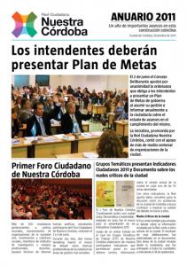 El pasado 13 de diciembre, en el marco de la reunión plenaria de la Red, se presentó el Anuario 2011 de Nuestra Córdoba. El documento presenta, en formato periódico, los principales hitos de la Red en general y de los Grupos Temáticos de Trabajo, alcanzados durante el presente año.