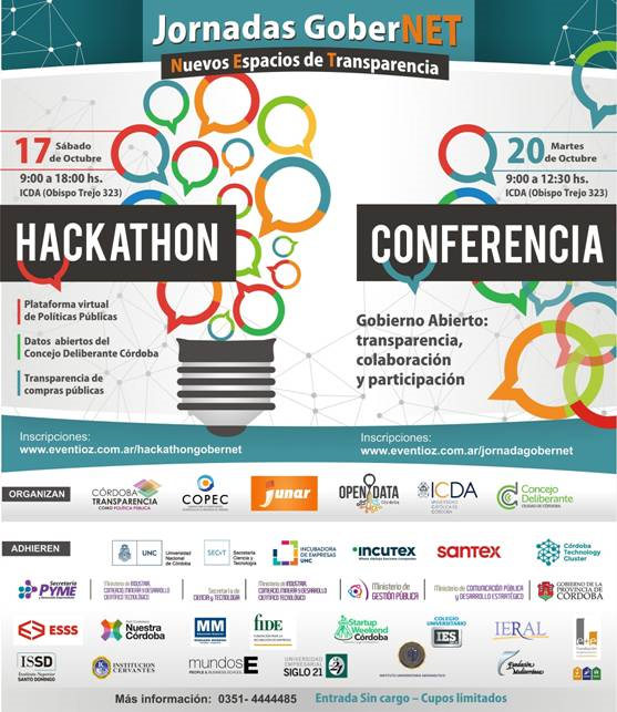 Nuestra Córdoba adhiere a las Jornadas GoberNET que el Consejo de Planificación Estratégica de la provincia de Córdoba (COPEC), en conjunto con ICDA, el Concejo Deliberante de la ciudad de Córdoba, Junar y Open Data organizan con el objetivo común de promover Nuevos Espacios de Transparencia.