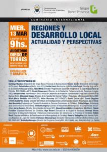 La Red Ciudadana Nuestra Córdoba invita al Seminario Internacional Regiones y Desarrollo Local: Actualidad y perspectivas, que tendrá lugar el miércoles 13 de marzo a partir de las 9 hs. en el Auditorio Diego de Torres, Sede Centro de la UCC, Obispo Trejo 323.